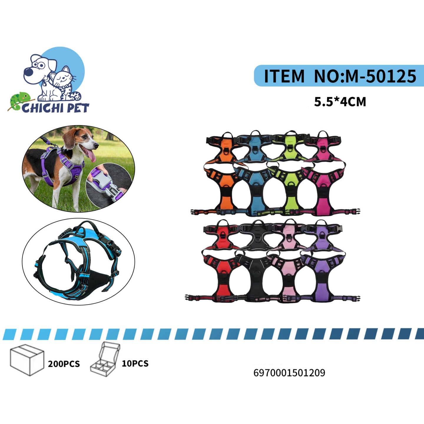 - Control: Diseñado como estilo anti-tirones, distribuyendo la presión uniformemente. Incluye un asa de control montada en la parte superior y hebillas de liberación rápida duraderas.