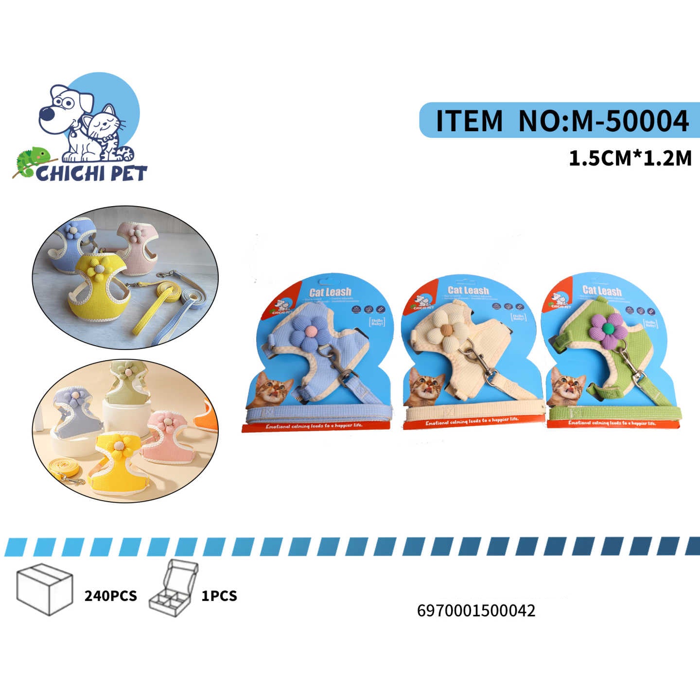 Nombre del Producto: CHICHI PET M-50004 Set de Arnés Tipo Chaleco de Malla con Acento de Flor Pompón y Correa (1.5CM x 1.2M)