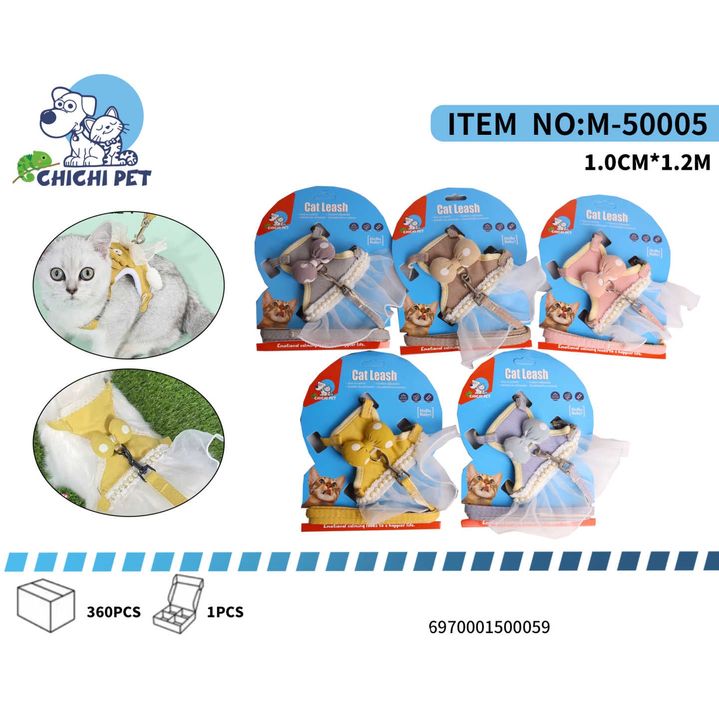 Set 2 en 1: Incluye el arnés decorativo y una correa/guía a juego.