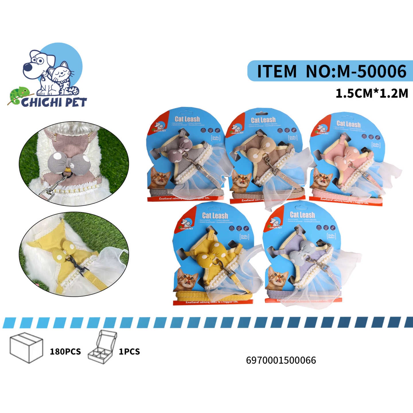 Nombre del Producto: CHICHI PET M-50006 Set de Arnés Tipo Chaleco para Mascota Pequeña (1.5CM x 1.2M) - Diseño de Falda con Volantes y Moño