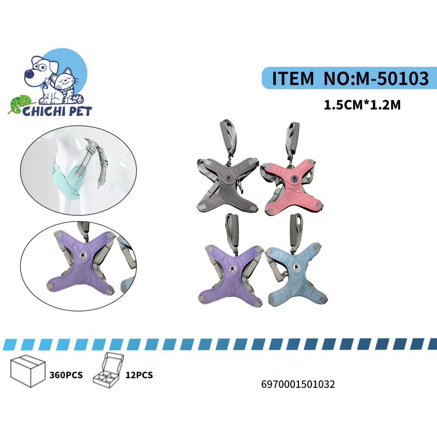 Nombre del Producto: CHICHI PET M-50103 Set de Arnés de Malla de Una Capa Color Sólido para Mascota (S 1.5CM x 1.2M)