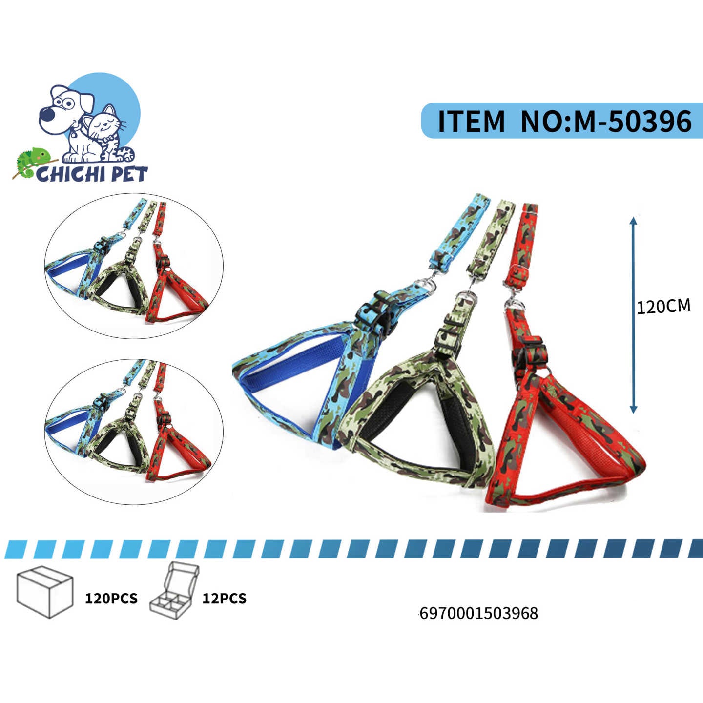 El Set de Arnés y Correa de Malla Acolchada Camuflaje CHICHI PET M-50396 combina durabilidad y comodidad para uso diario. Con acolchado de malla transpirable, el arnés garantiza que tu perro se mantenga cómodo mientras proporciona control seguro. La correa de 120cm (4ft) ofrece longitud amplia para caminar de forma segura en diversos entornos. Disponible en múltiples colores camuflaje, este set se adapta tanto al estilo como a la función para mascotas activas y sus dueños.